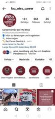 Auf unserem Instagram-Kanal , halten wir alle Studierenden auf dem Laufenden über aktuelle Angebote des Career Service, geben Input rund um die Themen Bewerbung und Berufseinstieg und machen auf interessante Stellenangebote auf unserem Jobportal FAU-Stellenwerk aufmerksam. Folgen Sie uns jetzt, um in Zukunft nicht mehr zu verpassen.
