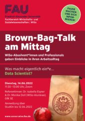 In diesem Vortrag stellen Ihnen zwei ehemalige Studierende/Doktoranden der FAU einen Tag im Leben eines Data Scientist bei der GfK vor. Dabei sollen sowohl das Skill Set eines Data Scientisten und die damit verbundenen Berufsbilder erläutert und anhand einiger Praxisbeispiele und Projekte konkret veranschaulicht werden. Zudem gibt der Vortrag einen Überblick über die agile Arbeitsweise und wie diese in Data Science Projekten Anwendung findet.